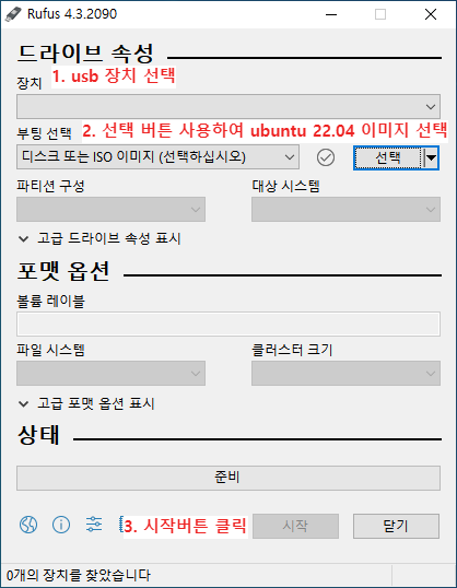 4. rufus 사용하여 SD Card에 다운로드 받은 이미지 굽기