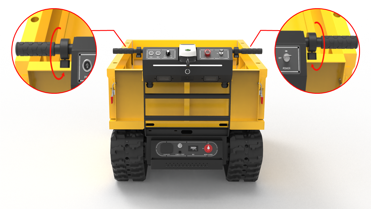 유선 조종 스위치를 이용하여 로봇의 전·후진 및 조향을 직관적이고 간편하게 조작할 수 있습니다.